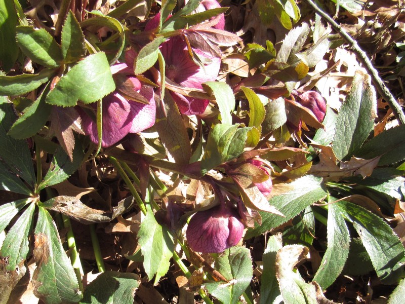 The hellebore languished for some years after I planted it. But then, I think in 2017, we had a huge cicada generation born, and the emergence from deep in the ground must have freed up the roots from struggling against those of the giant oaks. That summer the hellbore took off, and it’s been a big, healthy plant ever since, spreading out and making new hellebores. This lenten rose always blooms early and prolifically.