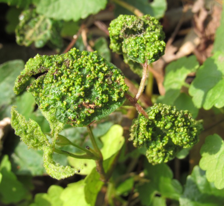 From last summer. This is poison ivy. Some tiny bug has turned the leaves into these crumply pimpled things, demonstrating that all residents of an ecosystem use and are used, and even nuisance plants and animals belong.