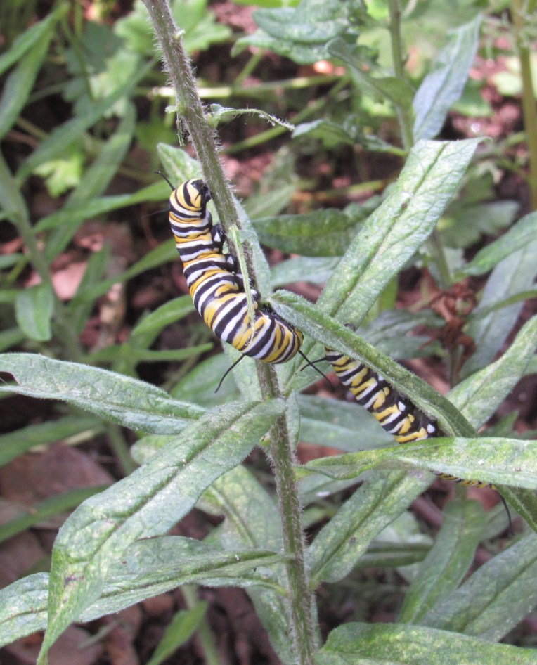 Meanwhile, I always plant butterfly weed, and grow new ones from seed I collect. I came across these caterpillars one morning, and the next day, a single one was left. After that, they were both gone. But I don’t think they’ve been harmed. They are pretty toxic when grown to this size. I think they were both at the point of making their chrysalis, and dropped off into the shadier foliage to attach themselves.