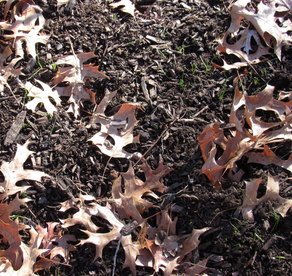 Below, tiny leeks coming up, where I scattered seeds from one I grew last year. They can grow a little throughout winter and be good for harvest in June or July next year.