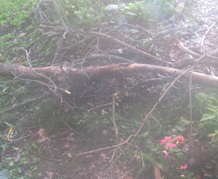 But the trunks and limbs of this one gave me material to finish out the above section of my stick-fence border.