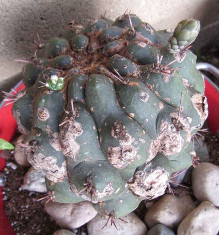 My cactus, that I’ve had for fifteen years or so. It has suffered a few indignities: being pinched in a too-small pot, being chewed by squirrels, having its needles bitten off by chipmunks. This year the cactus is making only one flower (last year, two), but—a complete surprise—it has started a tiny arm. I thought all along it was a barrel-type cactus, but it may be more akin to a saguaro.