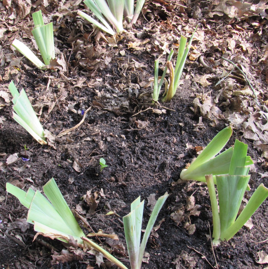 A stand of seriously crowded irises. No surprise they aren’t blooming. They need digging, dividing, and put in a new, sunnier location. Then I’ll have a gap in the bed to fill with something, a problem no gardener minds.