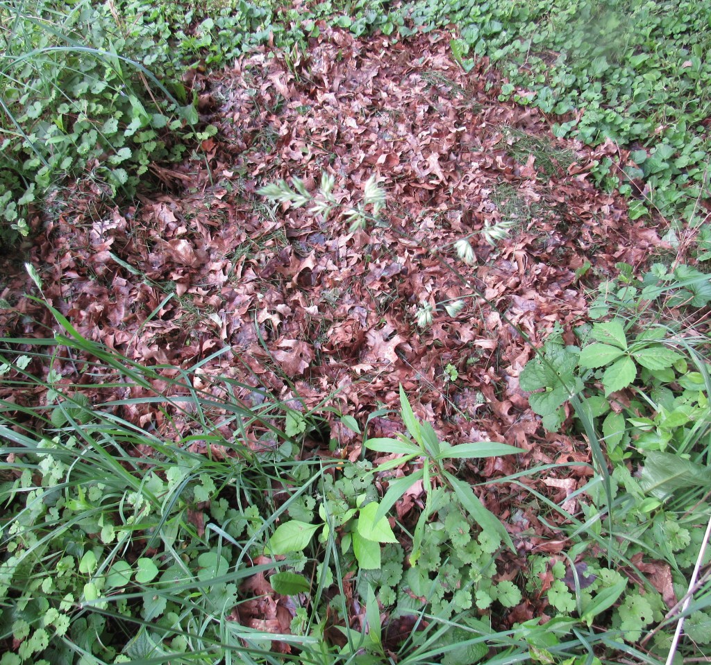 Finally, I’ve raked on leaves to protect the bulbs from squirrels, and keep them from being exposed by rains. The leaves will add richness to the bed, but if they’re oak, should be thinned in time. When they begin to form a mat, your bulbs and perennials alike need light and air, so you should do a general midwinter raking (that is, late January, early February), taking about half the leaves away for composting.