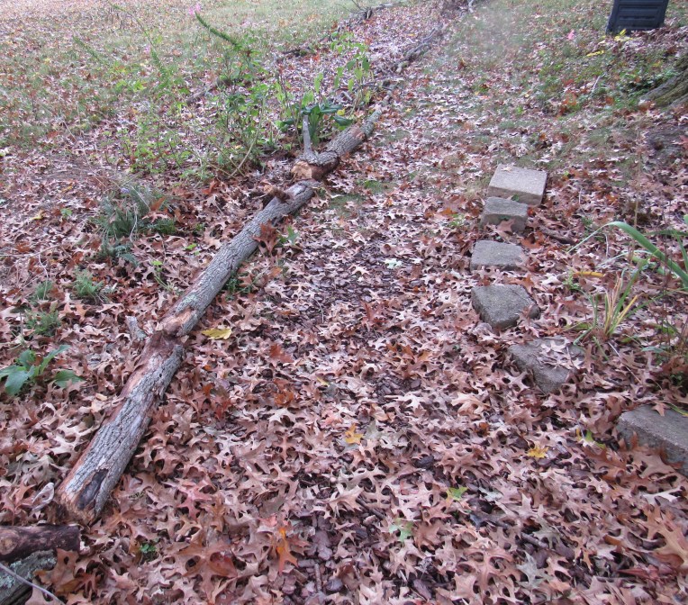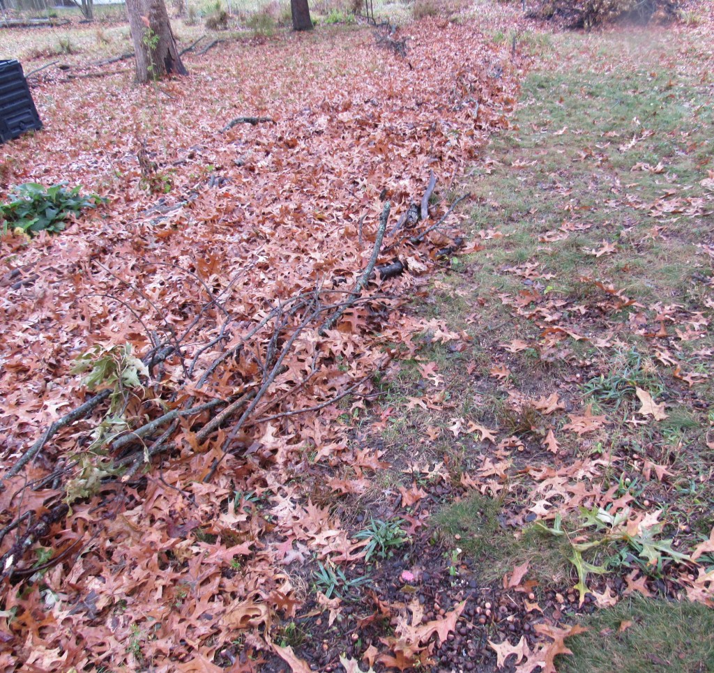A collection of nursery pots I painted (using outdoor-rated paints), that will be fun to cluster on the patio, along the paths, and here and there in the beds. The largest sizes I’ll use for vegetables. Next year, I plan to do tomatoes, peppers, lettuce, potatoes, kale, and gourds in pots, with stakes and deer netting. Every year I refine a little, though I haven’t got a good harvest yet. I have two-year-old strawberries that may produce, and Romanesco cauliflower that looks like it will keep growing into the winter.